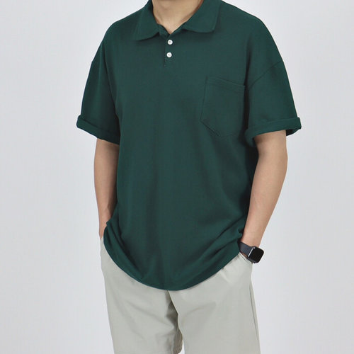 [리빌모아]남자 오버핏 솔리드 PK 카라넥 반팔 티셔츠 AC-KAH-Q006-그린