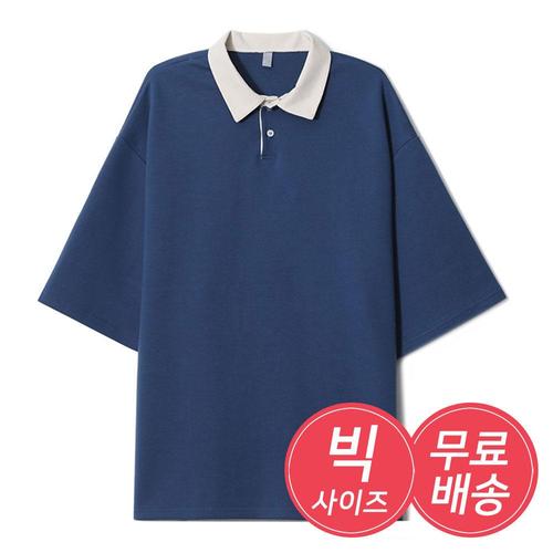 남자 오버핏 솔리드 PK 카라넥 반팔 티셔츠 AC-KAH-Q006-블루
