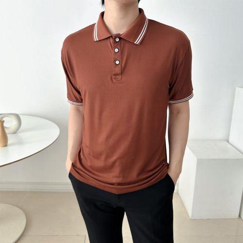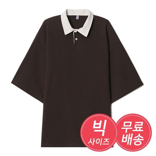 [리빌모아]남자 오버핏 솔리드 PK 카라넥 반팔 티셔츠 AC-KAH-Q006-브라운
