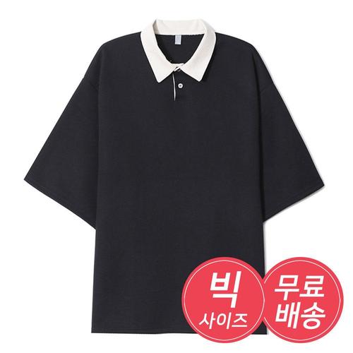 [리빌모아]남자 오버핏 솔리드 PK 카라넥 반팔 티셔츠 AC-KAH-Q006-블랙