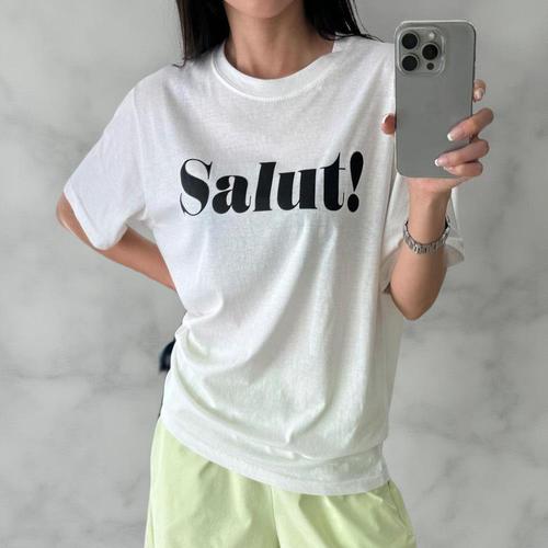 [다잇템]여성 필기체 티셔츠 쿨 라운드 반소매 코튼 티