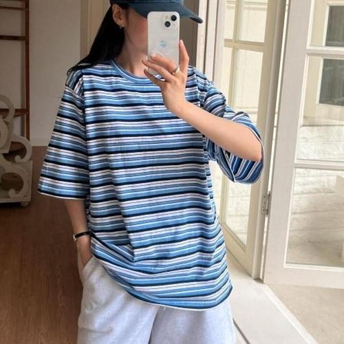 [다잇템][다잇템] 여자 콘트라스트 단가라 쿨 아방핏 워터밤 라운드 티셔츠_21850543_588872