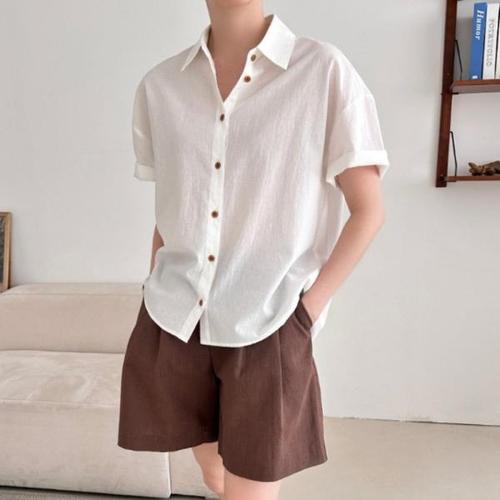 남자 출근룩 캐주얼 오버핏 차르르소재 쿨 반팔 셔츠