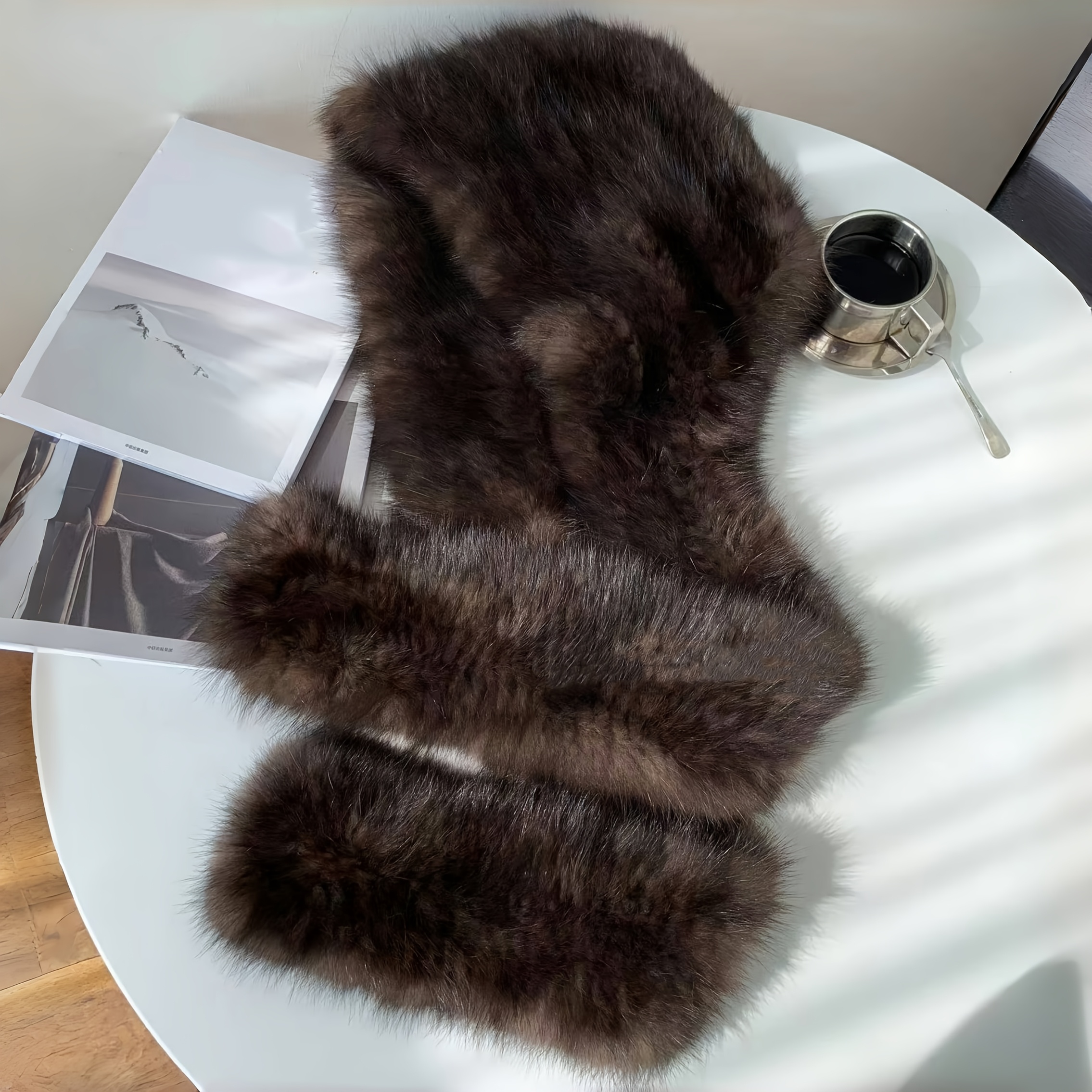 TEMU 여성용 플러시 모자, 인조 모자, 모자 및 스카프 조합, 귀 보호 보온 모자 및 스카프, 여성용 두꺼운 밍크 보온 모자, -20도 이하의 온도에 적합, 커피 색상.|모자|스카프