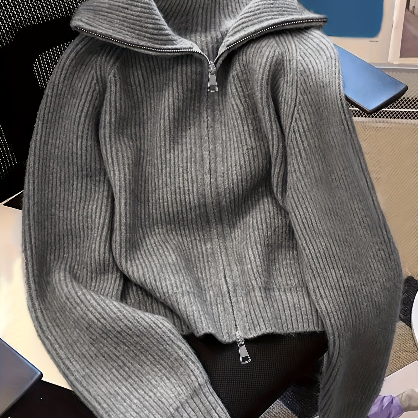TEMU 솔리드 컬러 양방향 지퍼 가디건, 캐주얼 롱 오프숄더 스웨터, 가을 겨울용 여성 스웨터