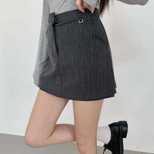 옷자락 / 여자 클래식 스트라이프 메탈버클 미니 치마바지