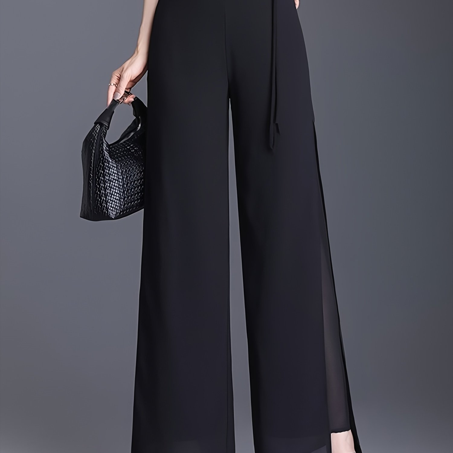 TEMU 여름을 위한 이 흐르는 이중 레이어 쉬폰 팬츠는 시원하고 드레이핑한 쉬폰 원단을 특징으로 합니다. 분리된 디자인은 매력을 더해 팬츠를 더 흥미롭고 예술적으로 만들며 걸을 때 시원한 느낌을 제공합니다. 간편한 허리 밴드 디자인.