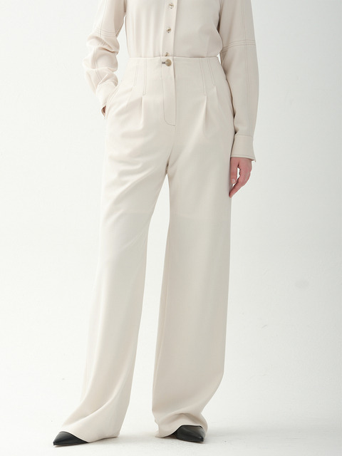 [준바이준케이] 트리플 스티치 하이라이즈 와이드팬츠_크림