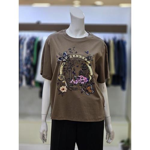 [다잇템]여성 나염 큐빅 스타일 단가라 버터플라이 티