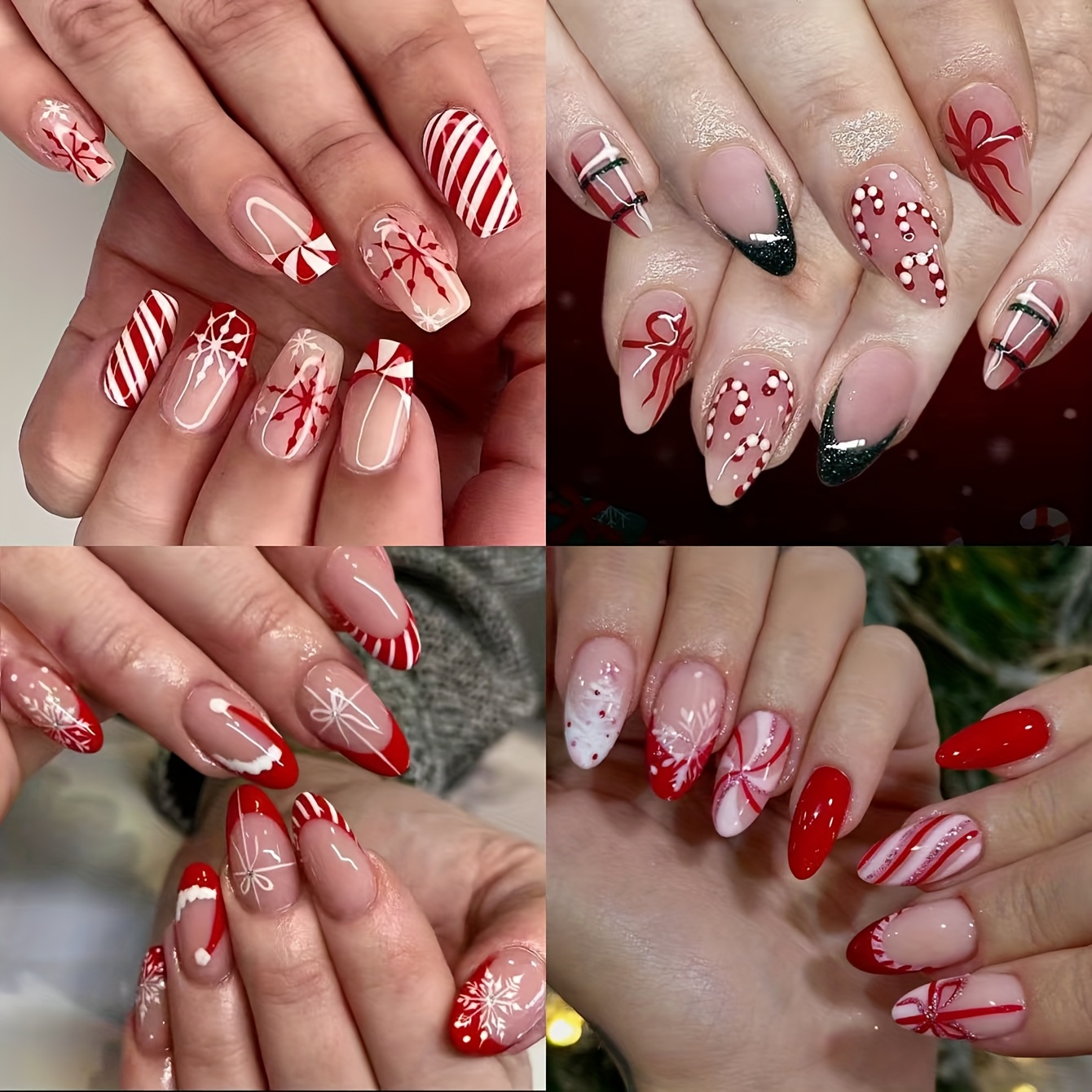 TEMU 10개 세트 핸드메이드 인조 네일 2403# 크리스마스 나비 미디엄 오벌 네일 세트, 프레스온 네일, 탈부착 가능한 인조 네일, 패셔너블한 라이트 럭셔리 웨어러블 네일 스트립, 우아하고 정교한 인조 네일, 쉽게 제거 및 재사용 가능, 젤리 글루 1개와 네일 파일 1개 포함, 일상생활, 직장, 학교, 데이트, 파티, 행사에 적합|네일팁