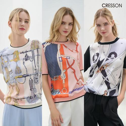 [크레송]스퀘어 패턴 티 블라우스 NWCFBX54DG