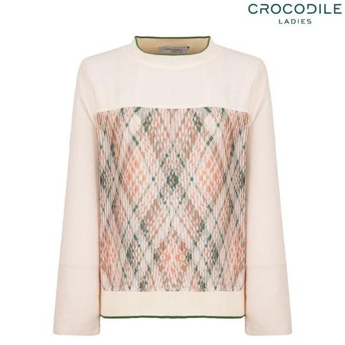 [크로커다일레이디]크로커다일레이디 (CLESTS110) 컬러배색 플리츠 라운드 티셔츠_GN