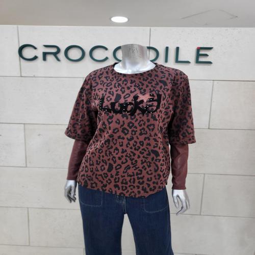 [크로커다일레이디]호피프린트 매쉬 배색티셔츠 CLEFTS108A-BR_BP