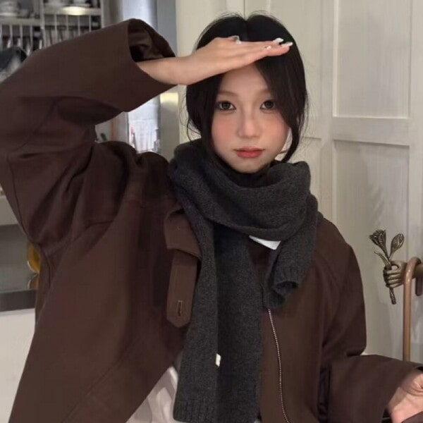 TEMU 심플 보더 솔리드 컬러 아우터 레이어 따뜻한 스카프 겨울용 부드럽고 플러시한 넥 워머 방한 쇼울
