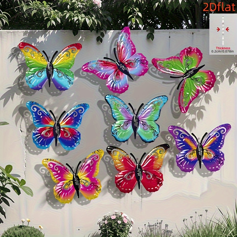 TEMU 2D 플랫, 8개 세트 아크릴 나비 벽 장식, 눈길을 사로잡는 디자인, 야외 정원 울타리·거실·침실 및 웨딩 레이아웃용, 자가 접착식, 설치 간편, 방수 기능, 2D 플랫