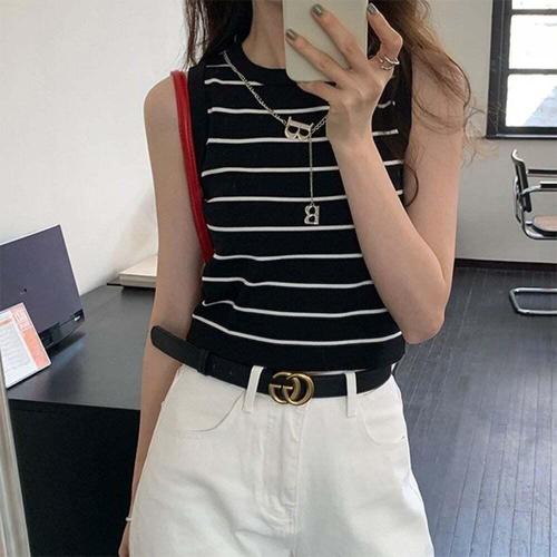 [오너클랜]인기상품 여름용 스트라이프 크롭 슬리브리스 이너웨어 탑 [WFLHJFS_260208]