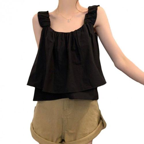 [오너클랜]인기상품 여자용 여름용 프릴 장식 슬리브리스 크롭 블라우스 A라인 [WFLI0CJ_260227]