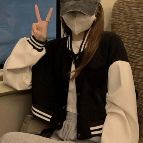 [신상오픈런]|CCJ6E39|여성용 세미크롭 배색 야구 점퍼 봄가을용