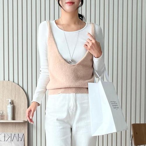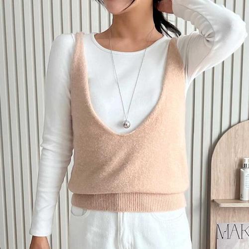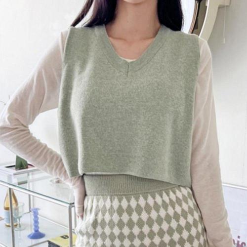 [오너클랜]인기상품 여성용 브이넥 크롭 니트 조끼 레이어드 스타일 [WFLLM4S_260305]