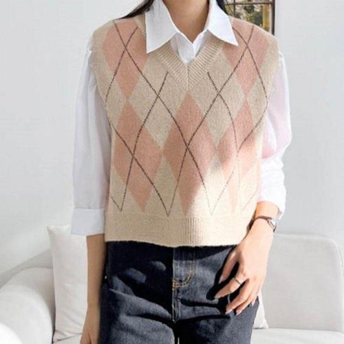 [오너클랜]인기상품 여성용 크롭 니트 조끼 아가일 패턴 데일리룩 여친 스타일 [WFLLK6S_260305]