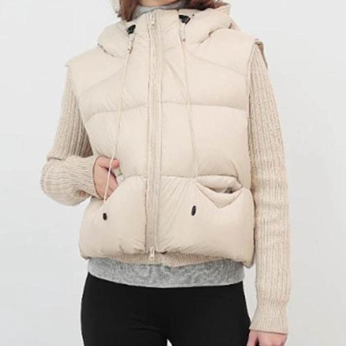 [셀러허브_여성트랜드패션]여자 조절 패딩 조끼 스트링 기장 겨울 크롭 숏 밑단