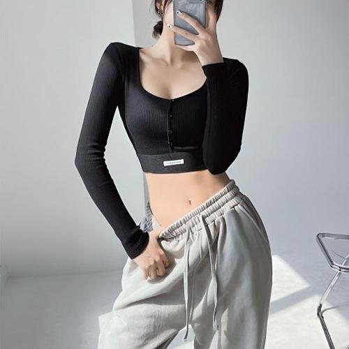 여자 슬림 긴팔쫄티 크롭 티셔츠