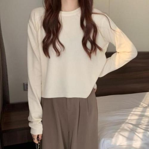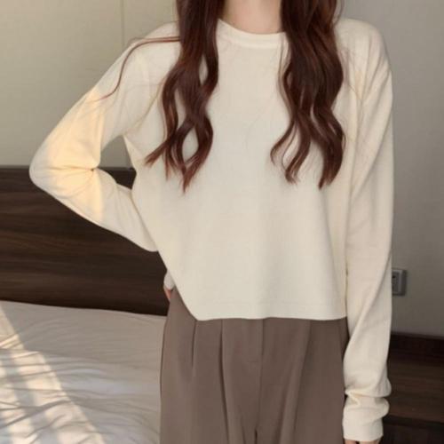 [신상오픈런]여성용 편안한 데일리 라운드넥 크롭 니트 탑 (46120453)
