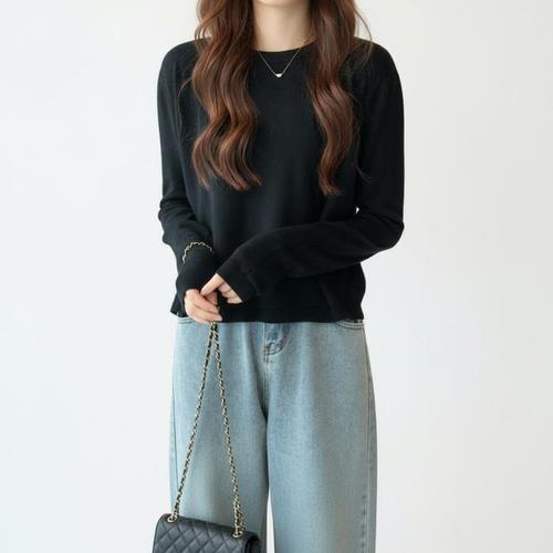 [오너클랜]인기상품 니트탑 라운드넥 크롭 여성 넥니트 얇은 무지 봄니트 [WFM3HTR_260213]
