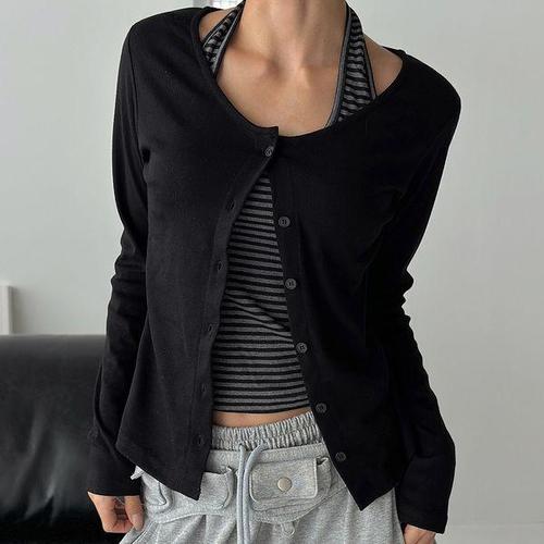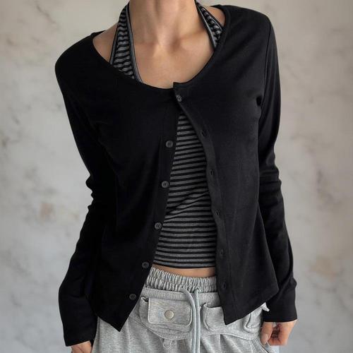 [신상오픈런]여성 홀터넥 크롭탑 라운드넥 슬림핏 긴팔 가디건 세트