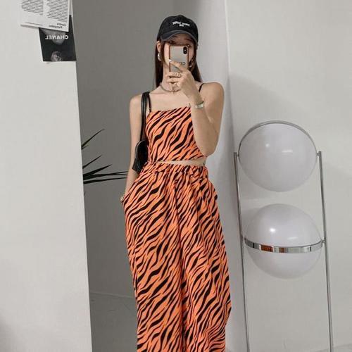 [다잇템]여자 색상 지브라 츄리링바지 크롭탑 넓은 세트 (10597379A)