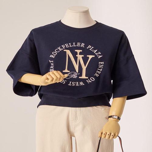 [커스텀에이블]NY자수 세미크롭 7부 맨투맨_T2602TS029A