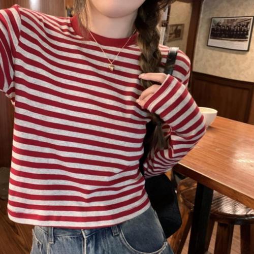 [오너클랜]인기상품 여성 캐주얼 단가라 맨투맨 크롭 스트라이프 긴팔 티셔츠 [WFLINZ0_260301]