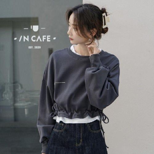 [오너클랜]인기상품 여성용 루즈핏 크롭 스트링 맨투맨 가을 데일리 티셔츠 [WFLLAU2_260304]