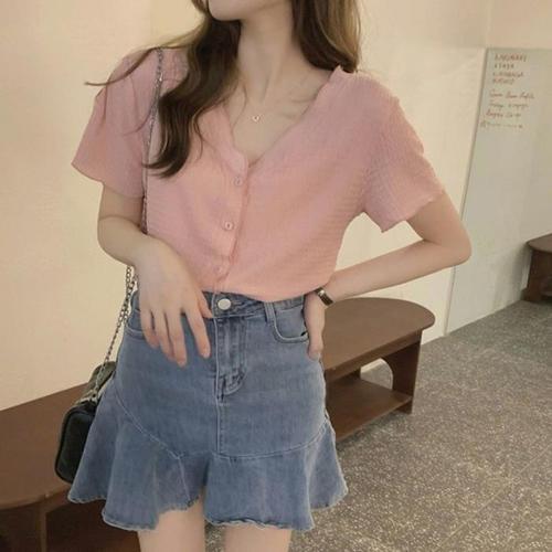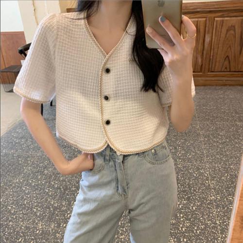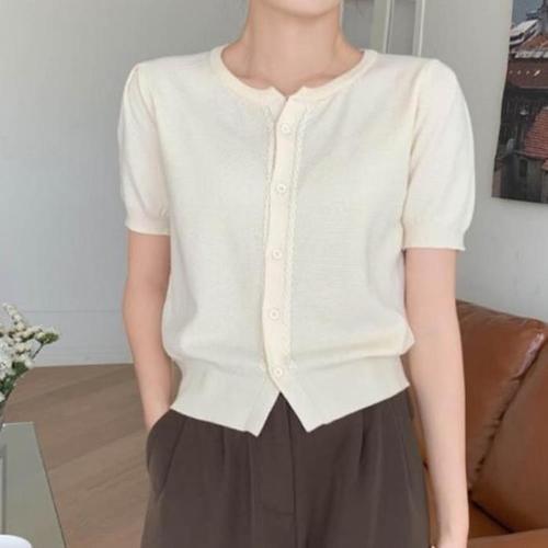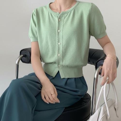 [셀럽하우스]단정한 GMOL1797 반팔 크롭 여자 여름 가디건 세미 라운드넥