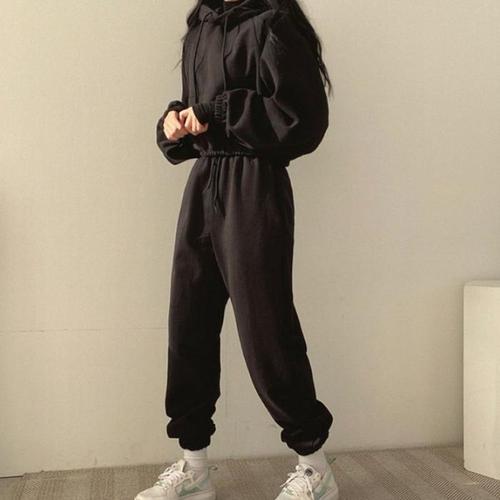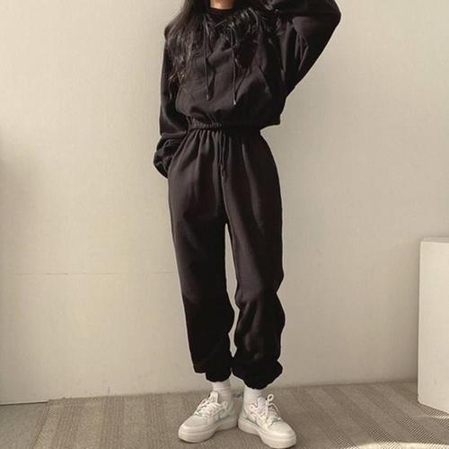 [에이치플러스몰]여자 2컬러 캐주얼룩 데일리 크롭후드 조거팬츠 세트