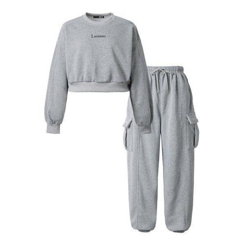 [비엔엑스]레터링 크롭맨투맨 조거팬츠 기모 셋업 (BW4OP008L0)