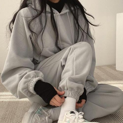 (완전 편한) 날씬해보이는 여성 뽀글이 맨투맨 팬츠 상하바지 세트 봄 겨울 기모 빅사이즈 양털 후리스 따뜻한 트레이닝복 외출용 홈웨어 허리 밴딩 조거팬츠 츄리닝 여자 캐주얼 투피스