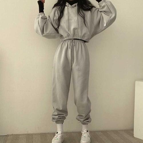 여성 조거 팬츠 조거팬츠 크롭 조깅복 후드 세트 (3amRV)