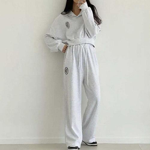[신상오픈런]여성용 루즈핏 크롭 후드집업과 와이드 트레이닝 팬츠 세트 (46120421)