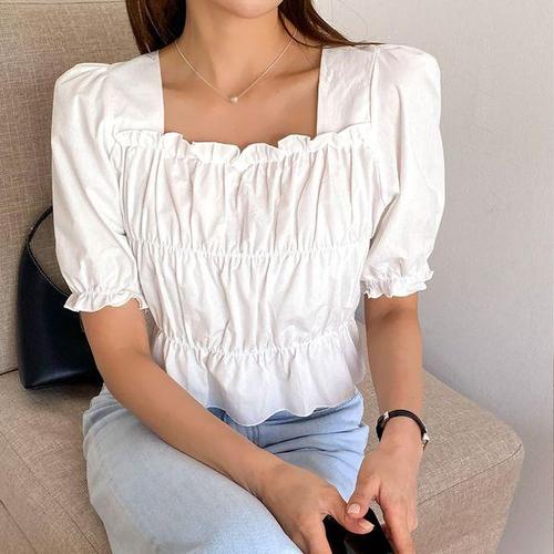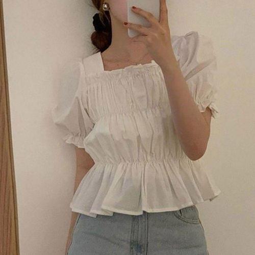 [셀럽하우스]셔링 EBZC9758 크롭 여성 여름 퍼프블라우스 블라우스 스퀘어넥