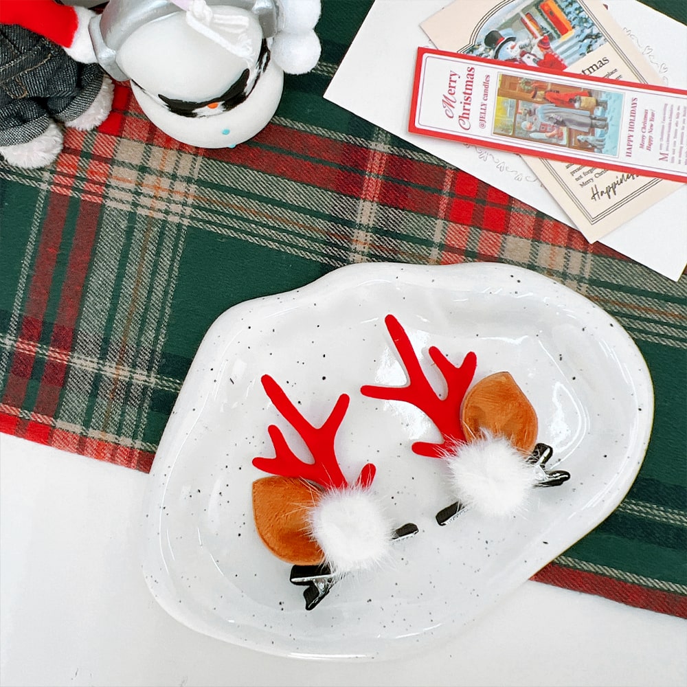 크리스마스 파티 머리장식 액세서리 사슴뿔 헤어 집게핀 레드 2세트