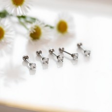 [쥬넬] (1+1)Silver925 크리스탈 큐빅 프레스 피어싱(6 size/2 color)