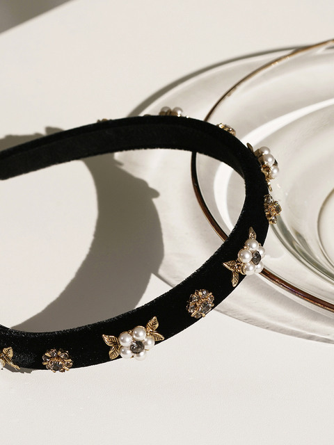 [루드] 플라워 크리스탈 진주 헤어밴드