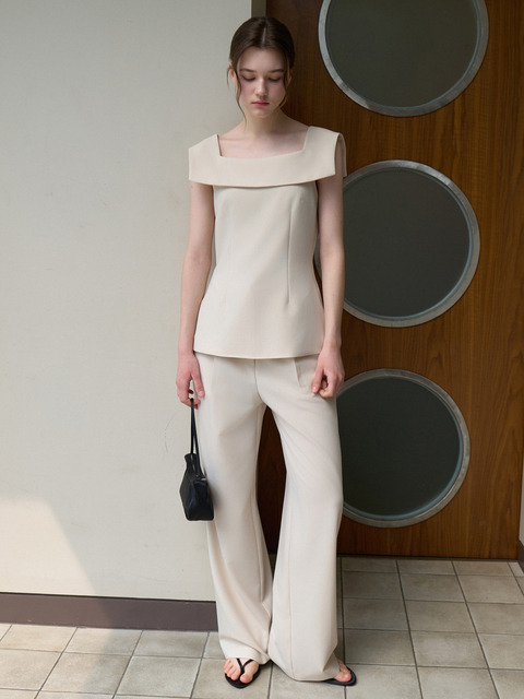 [주르티] [세트] 레이온 스퀘어넥 블라우스 + 레이온 와이드 슬랙스 크림 베이지 J1998