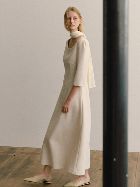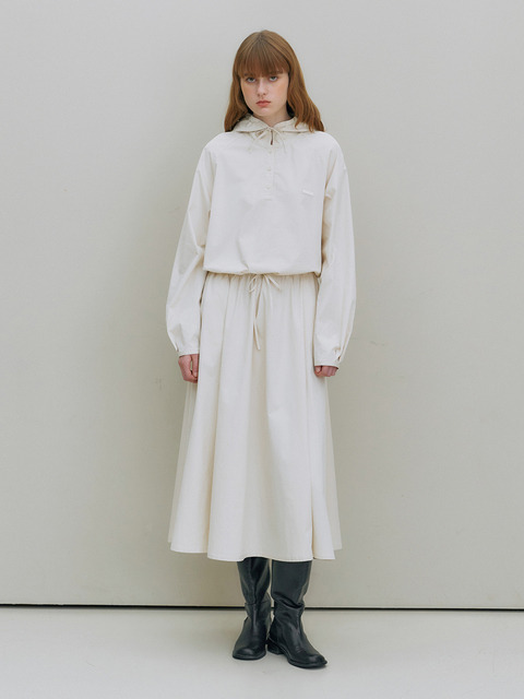 [세이지] 드로스트링 미디 드레스 - 크림 베이지