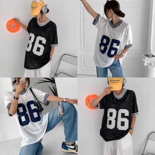 [다잇템]여자 스포티 풋볼 숫자 큰사이즈 럭비반팔티 (10512268A)