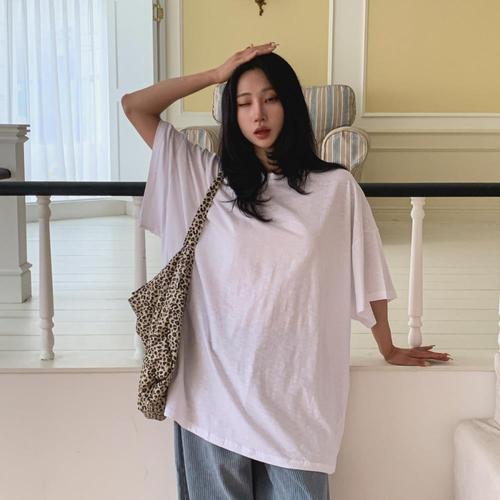 [다잇템]여성 아방핏 큰사이즈 반소매 원컬러 티셔츠