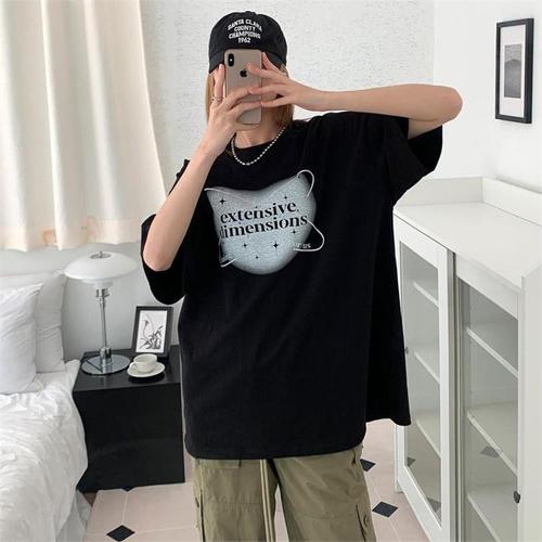 [다잇템]여자 U넥 반소매 큰사이즈 3컬러 필기체 티셔츠 (10636175B)