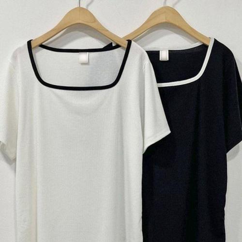 여성큰옷 빅사이즈 배색 스퀘어 반팔티 305P361S 빅사