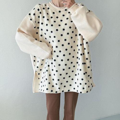 [다잇템]여자 U넥 패턴 밑트임 별무늬 큰사이즈 티셔츠